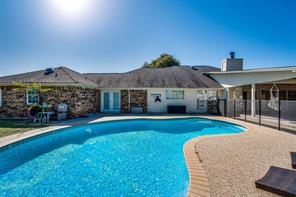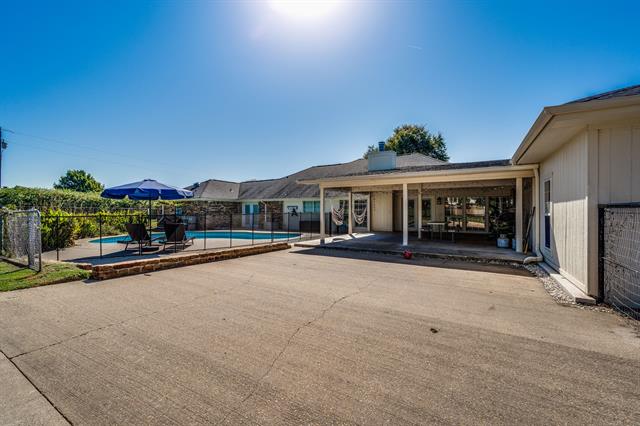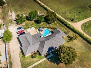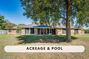 Discover your dream home with 3494 sqft of living space, 5 bedrooms, 3 baths, all nestled on a 3+ acre property. This spacious, open-concept home offers plenty of room for everyone, featuring an updated kitchen with stainless steel appliances, a dedicated home office, and a large mother-in-law suite or flex space. Enjoy the sparkling pool and large covered porch area, perfect for outdoor activities and entertaining friends. The vast, oversized garage can easily be used as a workshop at 972 sqft. The additional parking slab is ideal for an RV, boat, or future expansion. Enjoy the peace and privacy of a small, quiet community while being just minutes from shopping, dining, and I35.